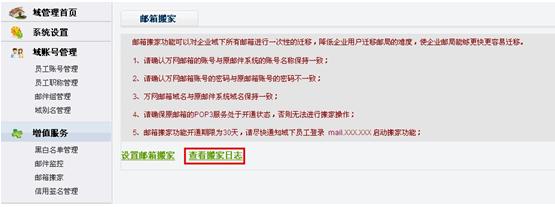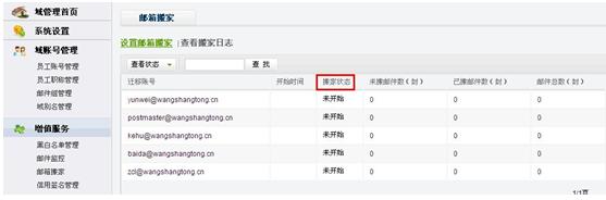 客戶點擊查詢按鈕可以查詢當前搬家狀態(tài),日志會顯示未搬家郵件數(shù)和已搬家郵件數(shù);
