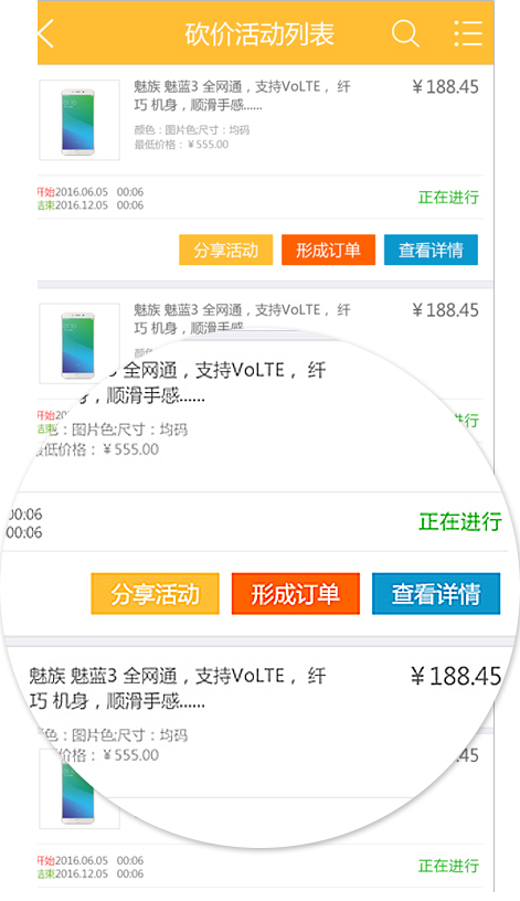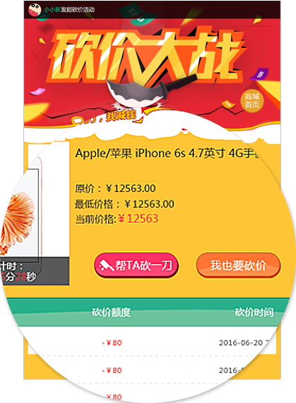 3、發(fā)起活動的顧客,可以即時的看到幫他砍價的朋友是誰,砍了多少錢,且需砍到商家設定的最低價時才能購買。