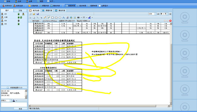 9、電子白板,使用第三方中間件(msoffice),可以打開(kāi)本地文件或服務(wù)器上的文件進(jìn)行閱覽,在會(huì)議期間參會(huì)者可以選擇廣播式和非廣播式,廣播式需要鎖定其他參會(huì)者的顯示器,其他參會(huì)人員可以看到發(fā)廣播人進(jìn)行會(huì)議批注。